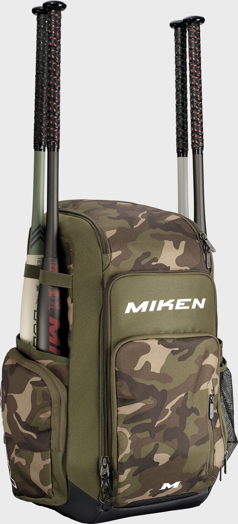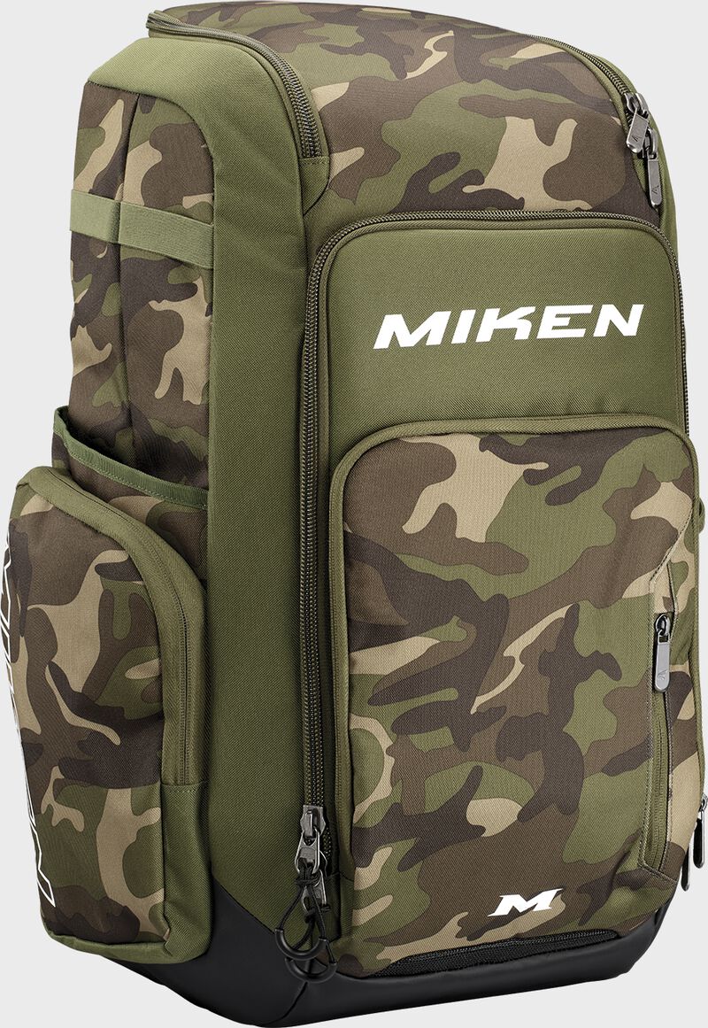 The Miken Deluxe Slowpitch Backpack was engineered specifically for slowpitch players who need a quality bag for their gear. First off, it has 4 individual bat sleeves on the sides so you can easily carry all you bats to the field. It's also equipped with a large main compartment for helmets and other gear, and also features a top glove compartment to keep your glove safe and in game form. It has large, durable zippers too. This backpack is offered in a classic, stylish black design or eye-popping Stars & Stripes or camo for players who want some added style. This deluxe slowpitch backpack is the perfect bag for any slowpitch player, order today!